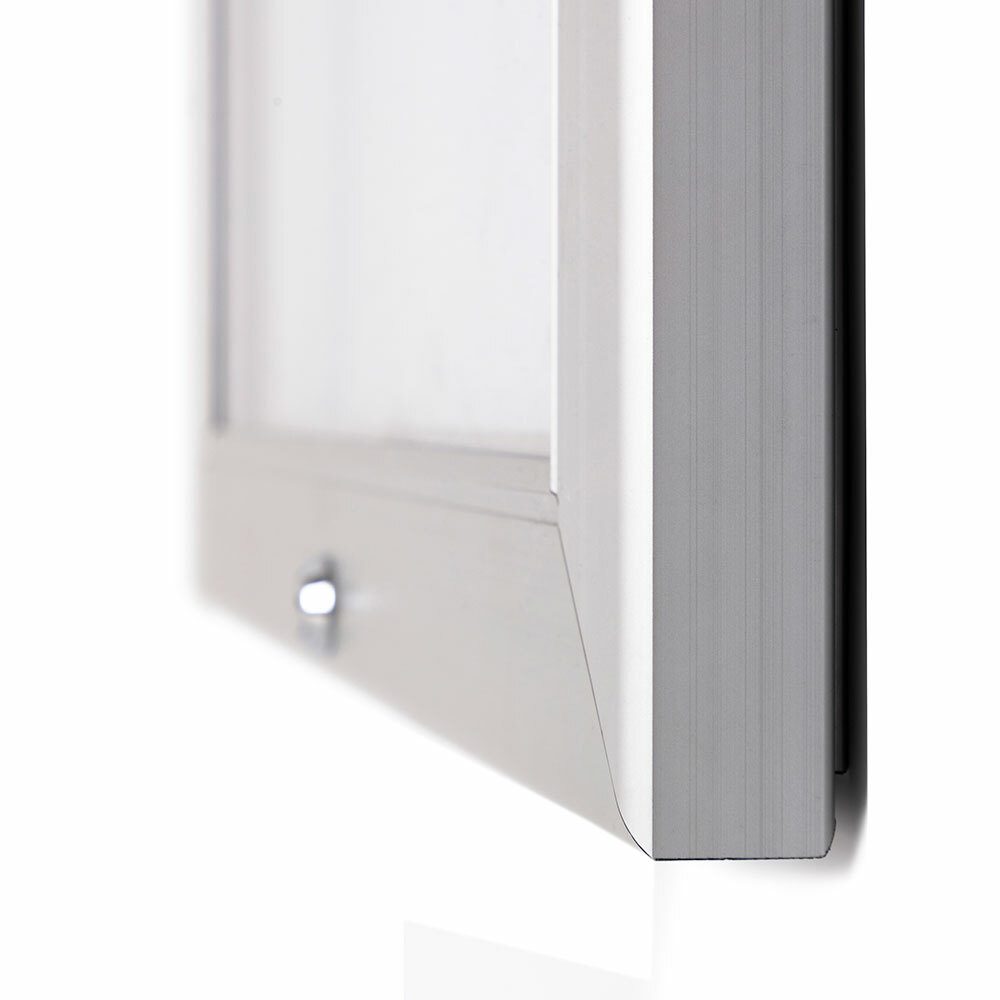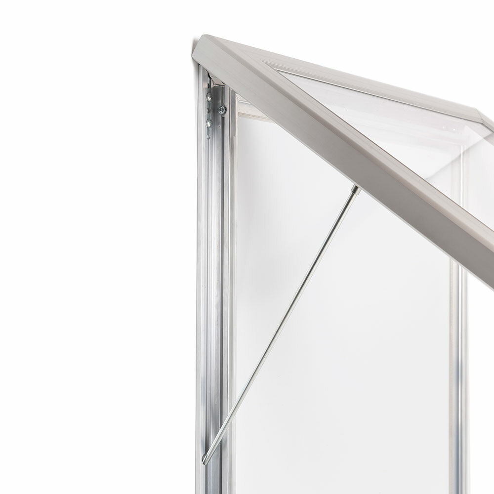 Ein dreifaches Silikondichtungssystem schützt den Innenraum zuverlässig vor Witterungseinflüssen. Ab einer Größe von 12xA4 sorgen integrierte Gasdruckfedern für ein komfortables Öffnen und Schließen. Je nach Format ist der Schaukasten mit ein oder zwei abschließbaren Schlössern ausgestattet.