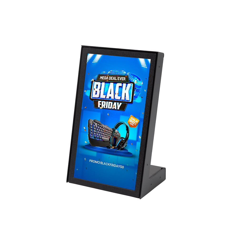 Der moderne Tisch-Digital-Display revolutioniert die visuelle Kommunikation in professionellen Umgebungen. Mit seinem brillanten 13-Zoll-UHD-Bildschirm im Hochformat präsentiert er Botschaften gestochen scharf und außerordentlich präzise. Das durchdachte L-förmige Design ermöglicht eine optimale Sichtbarkeit und eignet sich hervorragend für Empfangsbereiche, Verkaufsflächen und Servicepunkte.