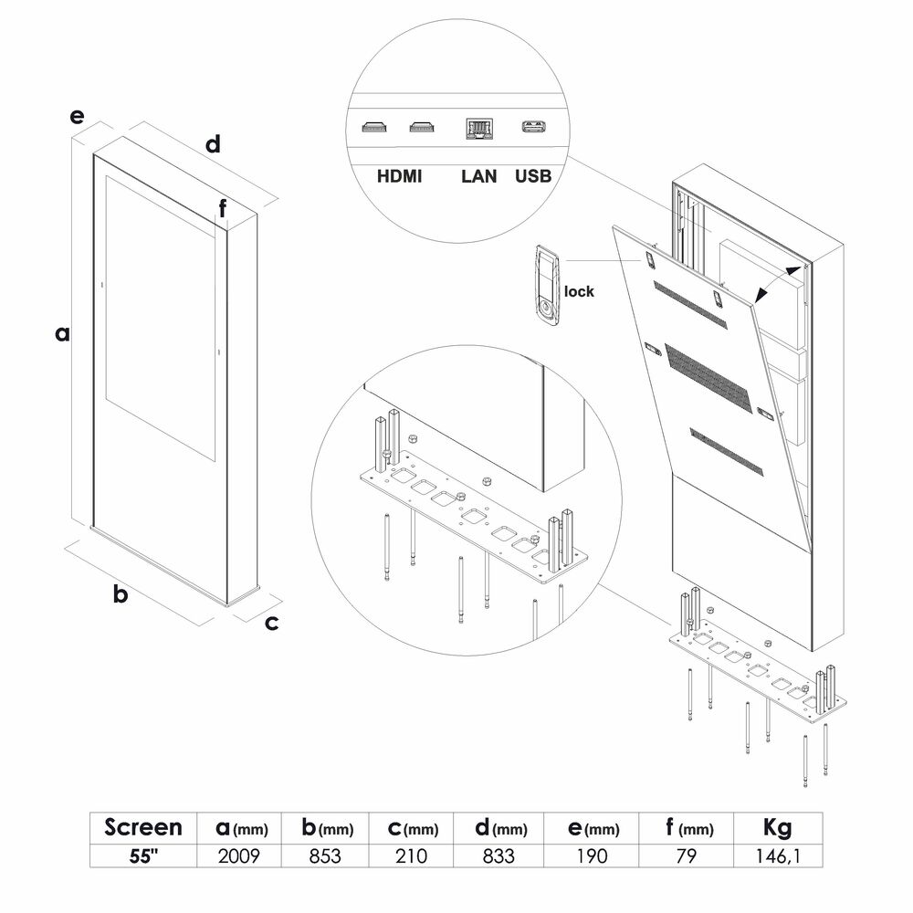 Die digitale Außenstele ist eine robuste Lösung für die professionelle Präsentation von Werbebotschaften im Freien. Konzipiert für anspruchsvolle Einsatzumgebungen wie Einkaufszentren, Flughäfen und Messestände, bietet sie eine wetterfeste Kommunikationsplattform.