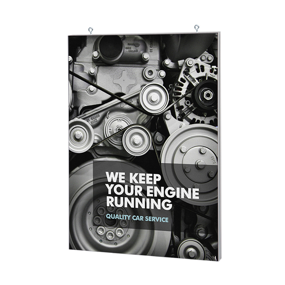 Der innovative Hängerahmen eignet sich ideal für Präsentationsflächen in Einkaufszentren, Einzelhandelsgeschäften und bei Veranstaltungen. Die beidseitige Druckoption ermöglicht eine flexible Nutzung und optimiert die Sichtbarkeit von Werbebotschaften.