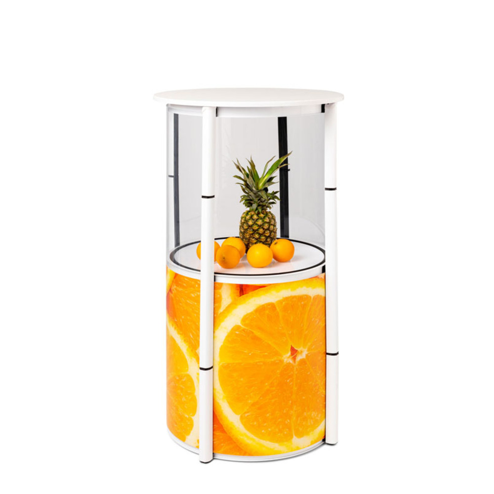 Konzept und Design: Das System überzeugt durch seine modulare Konstruktion mit zwei Ebenen und ermöglicht eine vollständige Personalisierung. Mittels bedruckbarer HIPS-Paneele können Unternehmen ihre Corporate Identity optimal kommunizieren und Markenauftritte individuell gestalten.