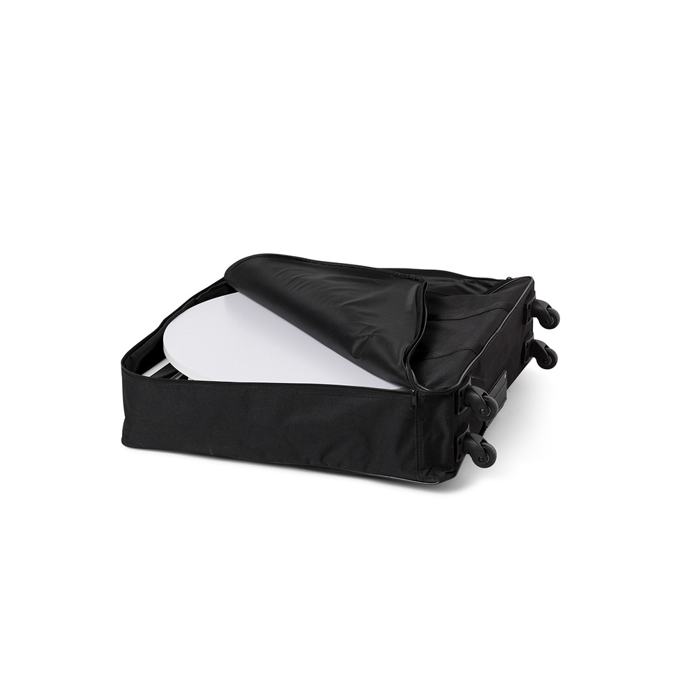Die Theke wurde mit Fokus auf Praktikabilität entwickelt und lässt sich dank durchdachter Mechanik schnell zusammenbauen. Die mitgelieferte gepolsterte Softtasche sorgt für einen sicheren Transport und einfache Handhabung. Insgesamt werden acht PET-Paneele zur Verfügung gestellt, die verschiedene Gestaltungsmöglichkeiten eröffnen.