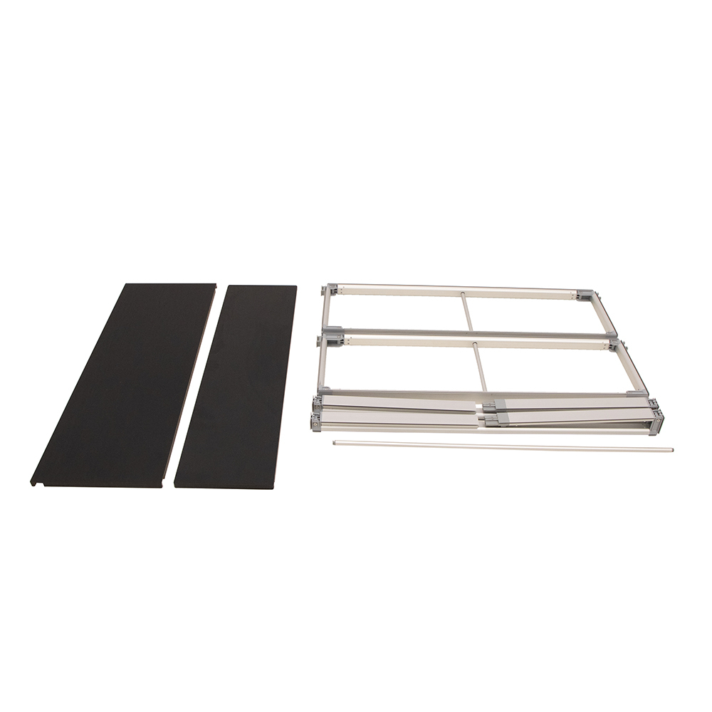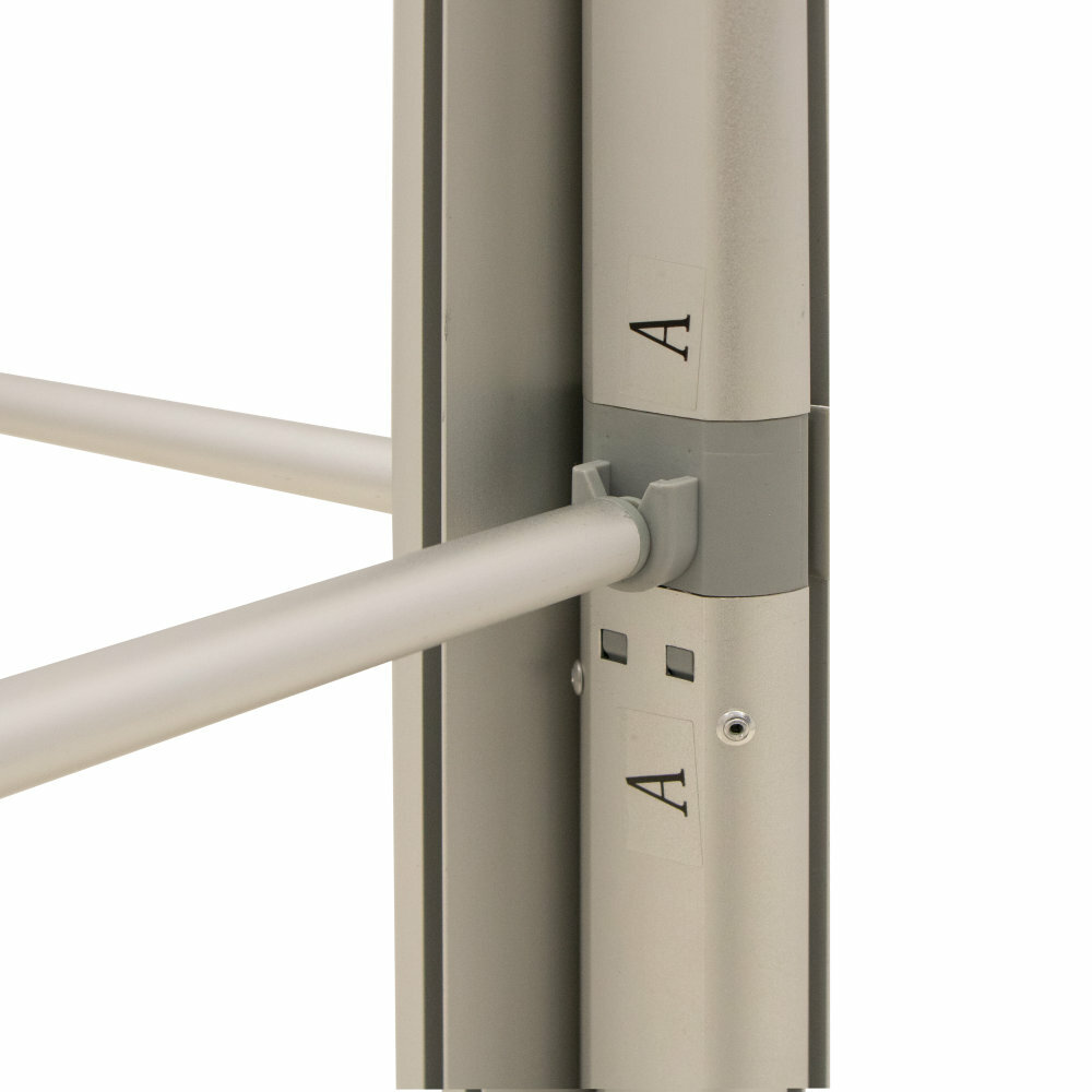 Die innovative Konstruktion ermöglicht eine individuelle Gestaltung von Promotionsflächen mit einer Breite von bis zu 5 Metern. Durch werkzeuglose Steckverbindungen lässt sich das System schnell und unkompliziert aufbauen und erweitern. Die mitgelieferte gepolsterte Tragetasche mit separaten Fächern gewährleistet einen komfortablen und sicheren Transport.