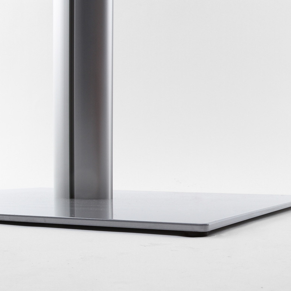 Der freistehendes Plakatständer überzeugt durch seine robuste Konstruktion und vielseitige Einsatzmöglichkeiten. Der Ständer basiert auf einem stabilen Metallsockel, der von einer ovalen, eloxierten Aluminiumstange getragen wird und somit eine zuverlässige Präsentationslösung für verschiedene Umgebungen bietet.