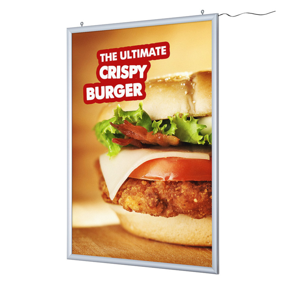 Durch den innovativen Klapprahmen lassen sich Poster schnell und unkompliziert austauschen, ohne den Rahmen selbst demontieren zu müssen. Die integrierte LED-Technik gewährleistet eine minimale Wärmeabgabe und sorgt gleichzeitig für niedrige Betriebskosten.