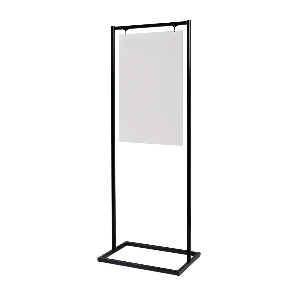 Das System ist in Schwarz erhältlich und bietet eine sichtbare Plakatfläche von 594 x 841 mm. Mit einer Gesamthöhe von 1807 mm eignet es sich hervorragend für Werbung, Leitsysteme, Hinweise oder Markenbotschaften in professionellen Umgebungen.