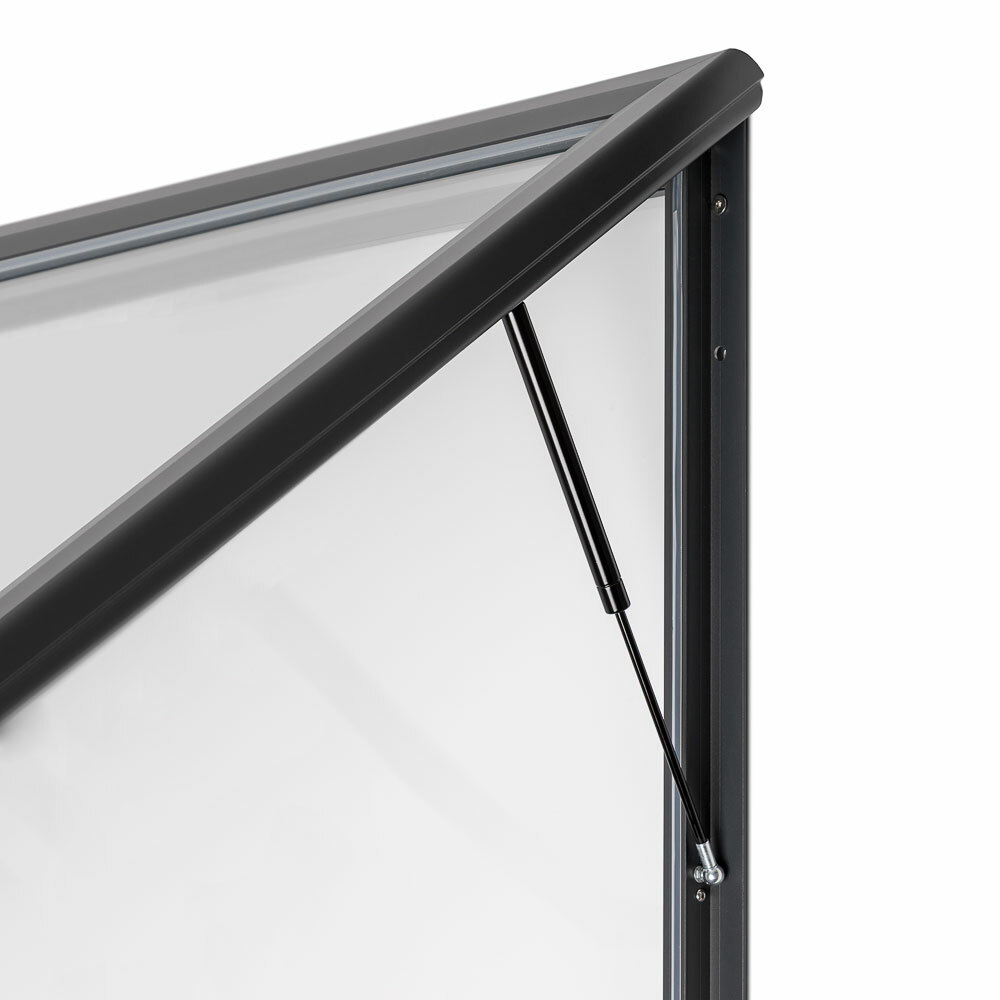 Der Schaukasten lässt sich universell an Wänden, Zäunen und Pfosten installieren. Für größere Modelle, die mehr als 12 A4-Blätter aufnehmen, sorgen integrierte Gasdruckfedern für komfortable Handhabung.