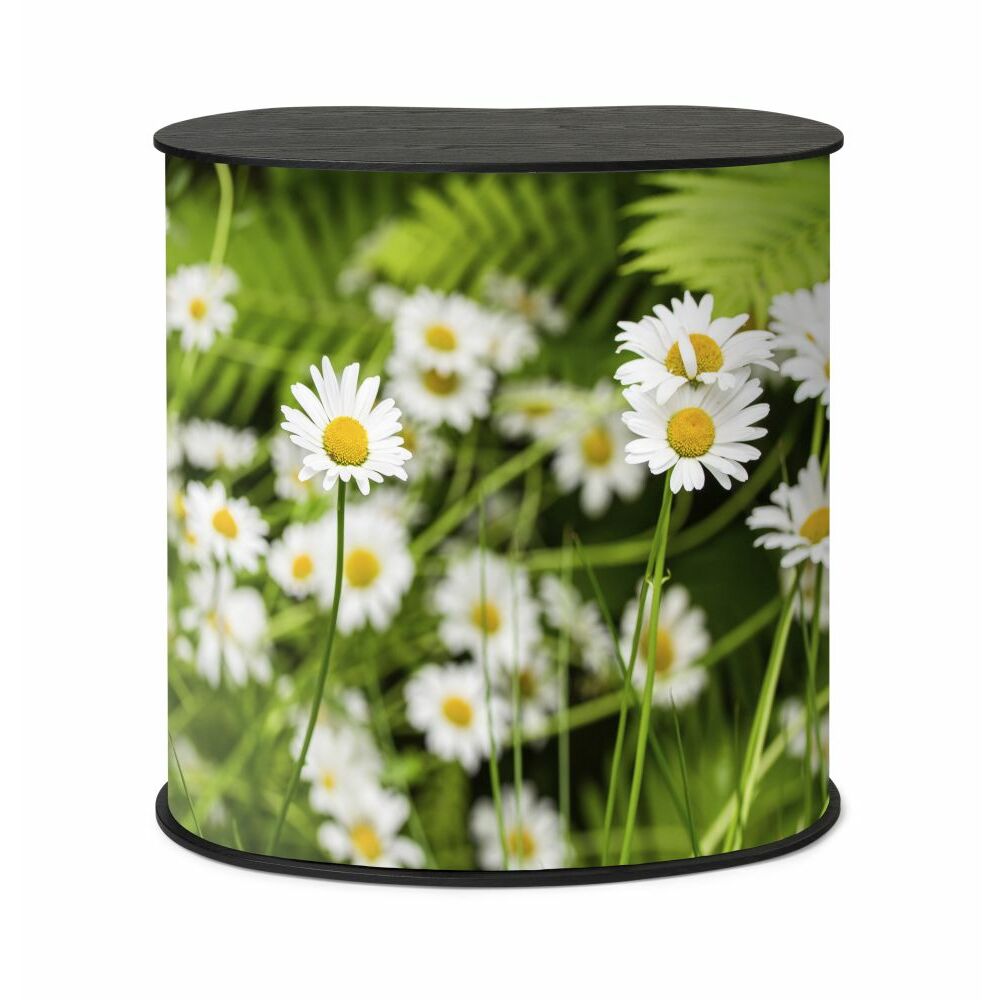 Ein besonderes Merkmal ist der Druck auf PVC-freiem PET-Material, der eine umweltbewusste Alternative zu herkömmlichen Druckmaterialien darstellt. Die Tischplatte ist in verschiedenen Farbvarianten wie Schwarz, Holz, Silber und Weiß erhältlich, was eine flexible Anpassung an Unternehmensidentitäten ermöglicht.