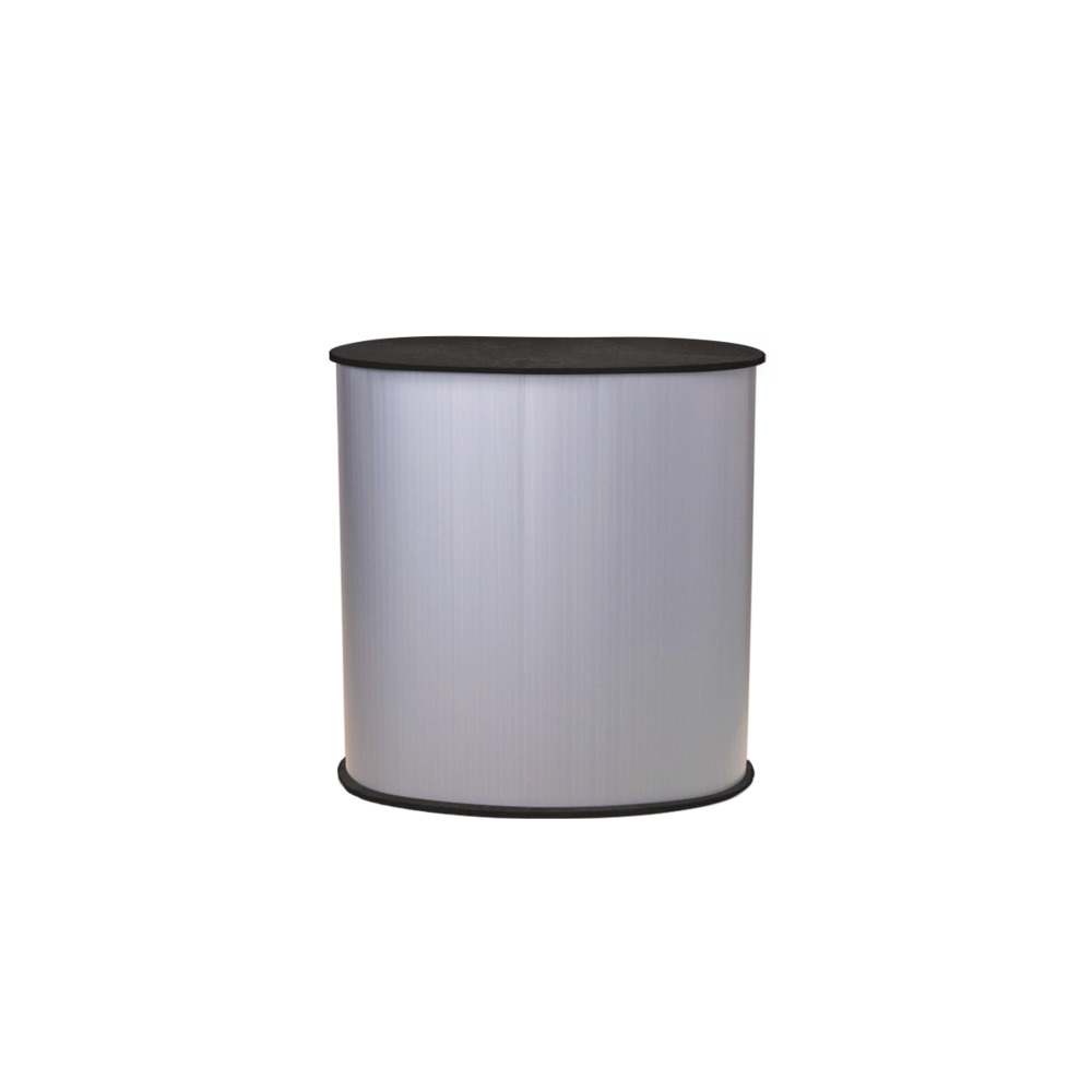 Die Promotiontheke Professional Original M überzeugt als flexible Lösung für professionelle Präsentationen in Unternehmen und bei Veranstaltungen. Die robuste Konstruktion ermöglicht einen schnellen und unkomplizierten Aufbau mit einer gewölbten Tischplatte, die durch ein integriertes Klettsystem eine nahtlose Grafikanbringung gewährleistet.